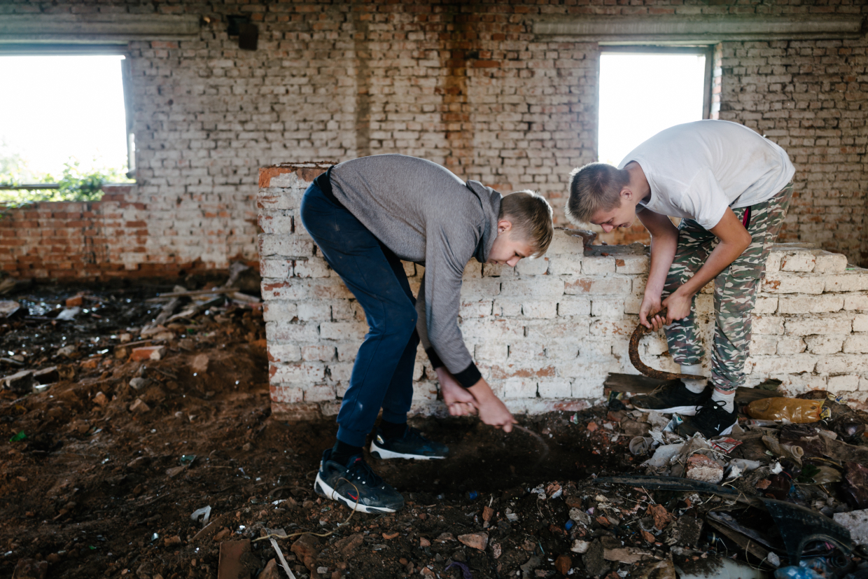 Денис и Никита собирают металл.